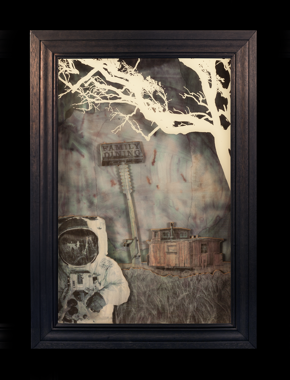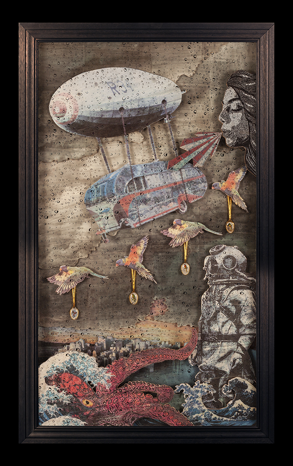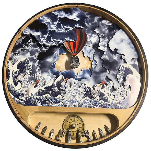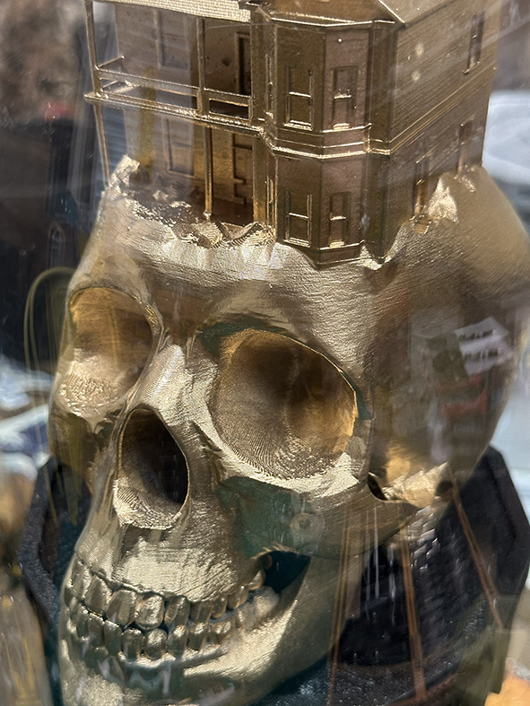 Upon the Threshold of Remembering draws us into a world where collapse is not only mourned but reimagined. Chris Boha gathers its remnants—rusted metal, scorched wood, cast glass—and reshapes them into sculptural parables and speculative fables. Each reliquary is absurd, tender, and richly layered. Drawing on Catholic iconography, climate grief, and mythic debris, Boha builds hybrid altars where saints give way to floating caravans, miniature skulls, and drifting houseboats. Humour flickers through the ruins. Play, not redemption, becomes sacred. These works invite us to dwell with what has broken, and to imagine otherwise—to tell new stories through ritual, wreckage, and irreverent grace.