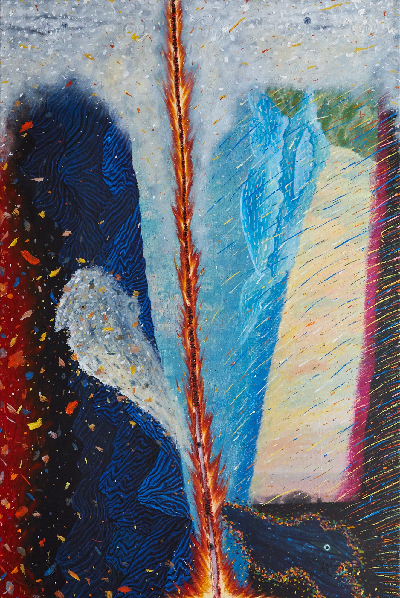 What these complex surfaces invoke is a threshold, one that invites speculation of the known and unknown, the seen and unseen, the spiritual and material. What of the eyes? In Withey’s work eyes are everywhere. Both figurative and abstract they inject a watchful presence, by turns protective and sounding alarm.