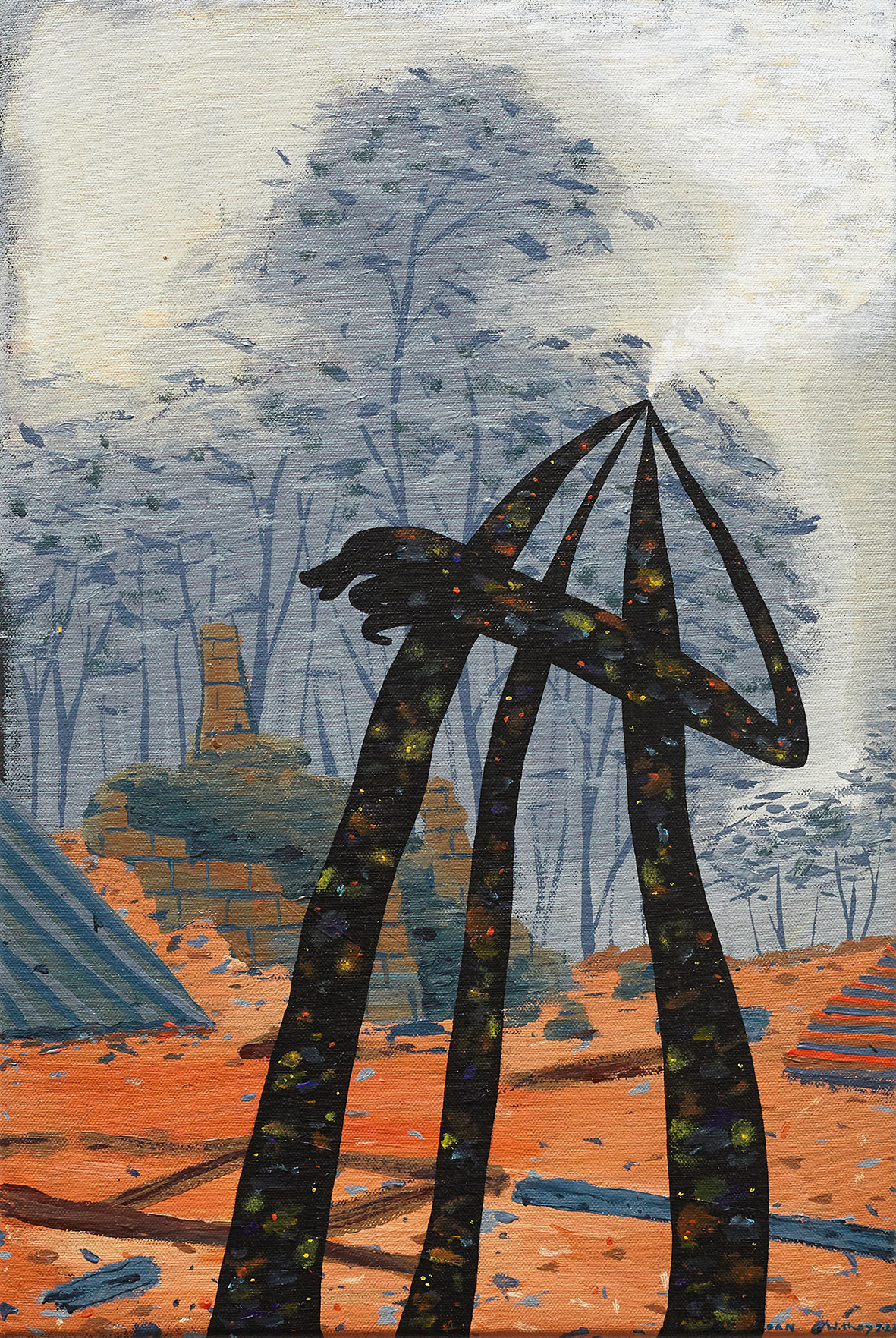 Withey has talked about the influence of animism on his worldview. The term animism, coined by anthropologist E.B Taylor in the 19th century, is derived from the Greek word anima, meaning soul or spirit, and animism meaning the belief in soul or spirit. Animism encompasses the belief that objects, sacred places, animals and natural phenomena possess a distinct spiritual essence. Used originally to describe ‘primitive’ cultures cosmology, for a century animism occupied the disciplinary boundaries of religion and anthropology. Viewed with circumspection, tainted by the ideals of colonialism, more recently animist ideas have been the subject of renewed interest in the humanities, social sciences and environmental/ecological movements and have been harnessed by First Nations Peoples in their efforts for increased self-determination. Animist beliefs shape and communicate cosmology, explain obligation, and frame relationship to place.