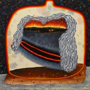 For a prolific maker, it’s an important juncture. An innate comedian Withey’s work has always carried a wry and sly humour. Attendant to the instinctive brightness, the dazzling colour and patterning, is a dark seam. Withey’s brightness feels like an unstable weather pattern. Looking at his work has a way of putting you in touch with the push and pull of cascading and conflicting thoughts. Those thoughts circle around ecological disaster and humankind. Human existence, or perhaps it’s just human exceptionalism, weighs heavily on the artist.