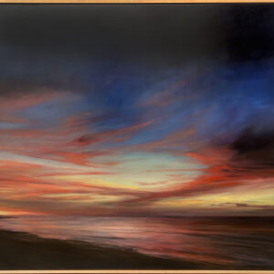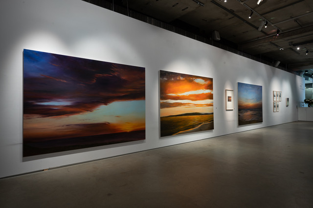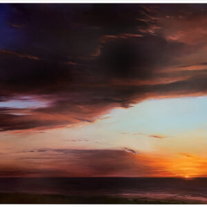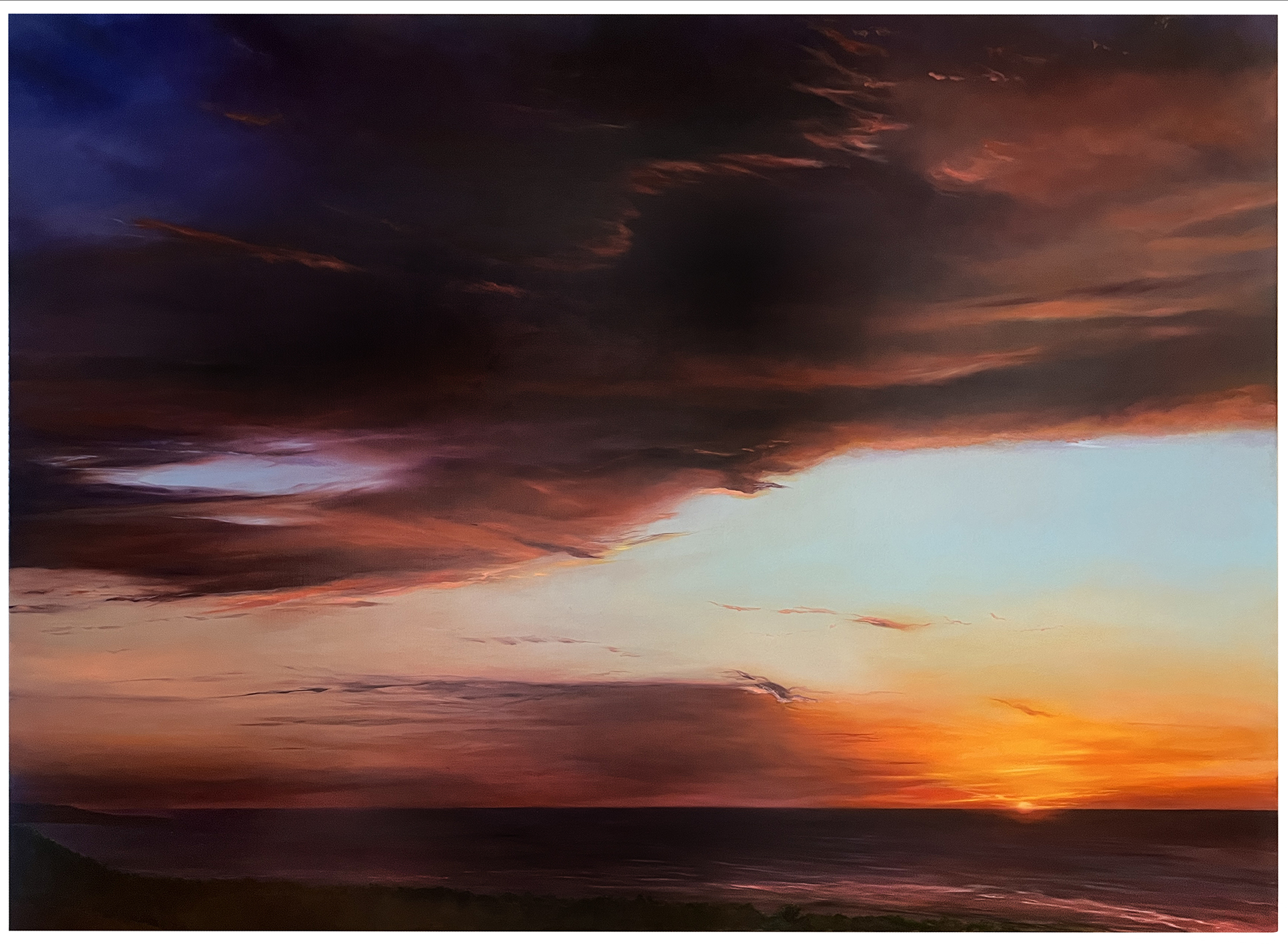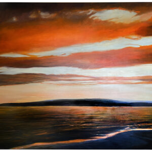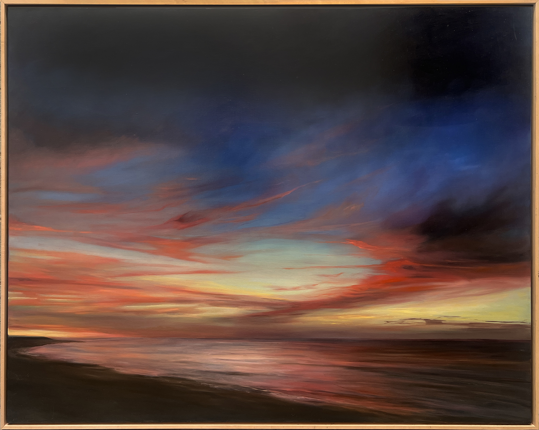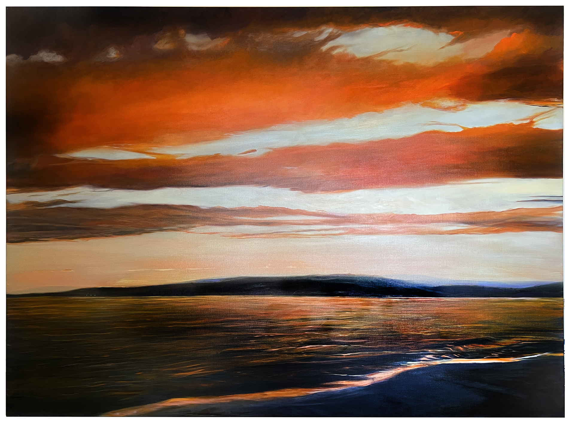 Thinking about time and temporalities was an implicit ingredient in the decision to make these paintings, because I am conscious that I do not know what the timeline will be before the scenes I now see and experience will physically change. It is in making larger painted works that I am especially mindful of the opportunity to leave evidence of my actions – large brushes, sweeping movements, and also small ‘flash’ highlights, achieved through deliberate brush notations. These marks translate visual memories I carry with me from the times spent in observation. I am conscious of the limitations that exist in painting, meaning that no matter how well skilled an artist, the act of painting the environment amounts to an act of translation from an ephemeral and ethereal experience, into a tactile and material object. What I am attempting to present to a viewer is an approximation of my visceral experience made material through the media of oil paint.